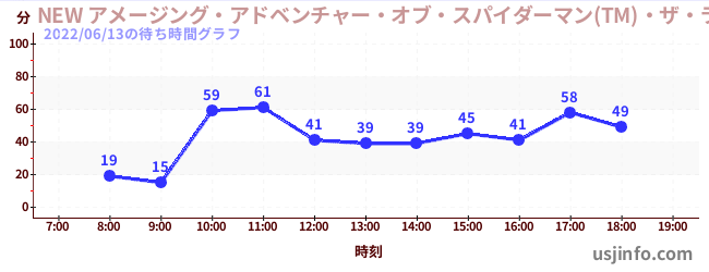 • NEW アメージング・アドベンチャー・オブ・スパイダーマン(TM)・ザ・ライド 4K3D$B$N(B2022年06月13日の待ち時間