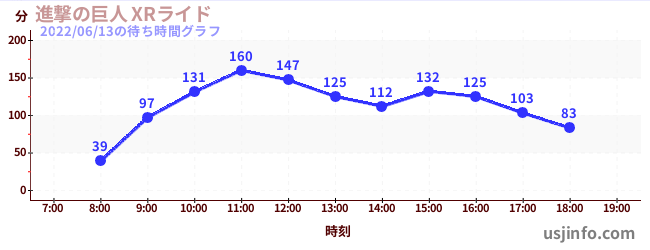 • 進撃の巨人 XRライド$B$N(B2022年06月13日の待ち時間