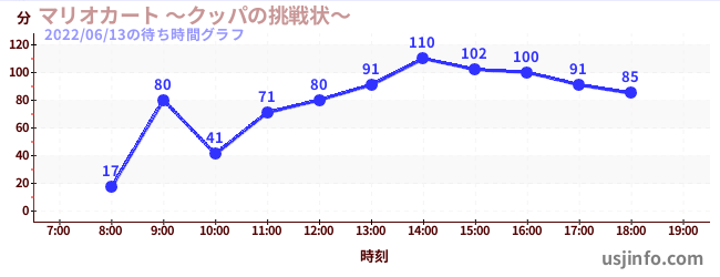 • マリオカート ~クッパの挑戦状~$B$N(B2022年06月13日の待ち時間