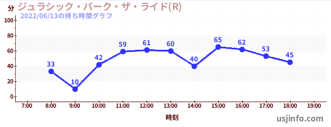 • ジュラシック・パーク・ザ・ライド(R)$B$N(B2022年06月13日の待ち時間