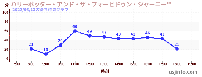 • ハリーポッター・アンド・ザ・フォービドゥン・ジャーニー™$B$N(B2022年06月13日の待ち時間