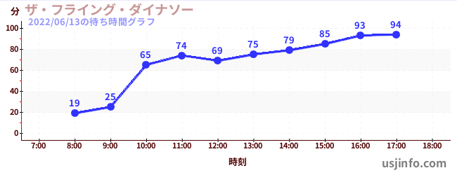 • ザ・フライング・ダイナソー$B$N(B2022年06月13日の待ち時間