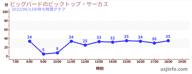 • ビッグバードのビックトップ・サーカス$B$N(B2022年06月13日の待ち時間