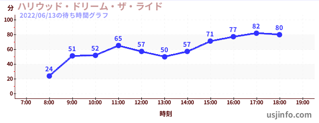 • ハリウッド・ドリーム・ザ・ライド$B$N(B2022年06月13日の待ち時間