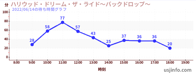 • ハリウッド・ドリーム・ザ・ライド〜バックドロップ〜$B$N(B2022年06月14日の待ち時間