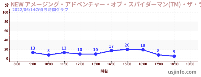 • NEW アメージング・アドベンチャー・オブ・スパイダーマン(TM)・ザ・ライド 4K3D$B$N(B2022年06月14日の待ち時間