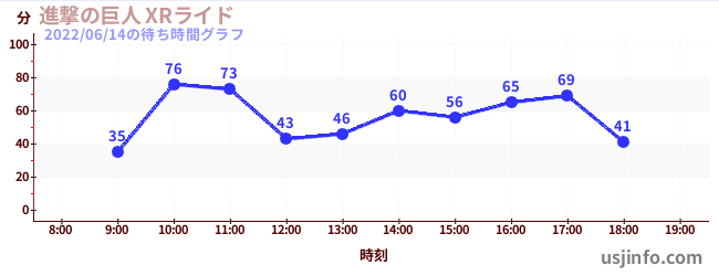 • 進撃の巨人 XRライド$B$N(B2022年06月14日の待ち時間