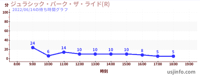 • ジュラシック・パーク・ザ・ライド(R)$B$N(B2022年06月14日の待ち時間