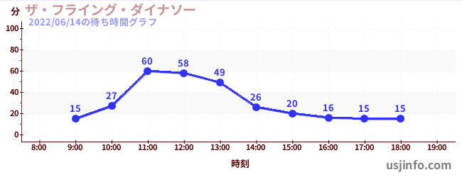 • ザ・フライング・ダイナソー$B$N(B2022年06月14日の待ち時間