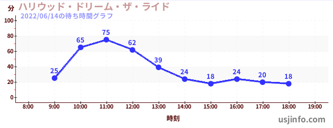 • ハリウッド・ドリーム・ザ・ライド$B$N(B2022年06月14日の待ち時間