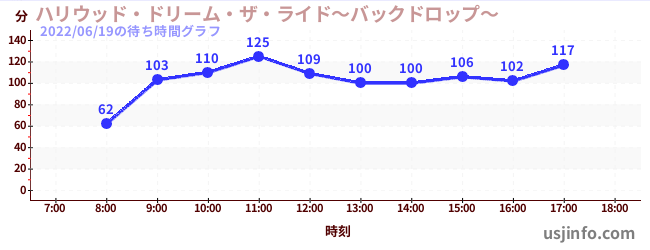 • ハリウッド・ドリーム・ザ・ライド〜バックドロップ〜$B$N(B2022年06月19日の待ち時間