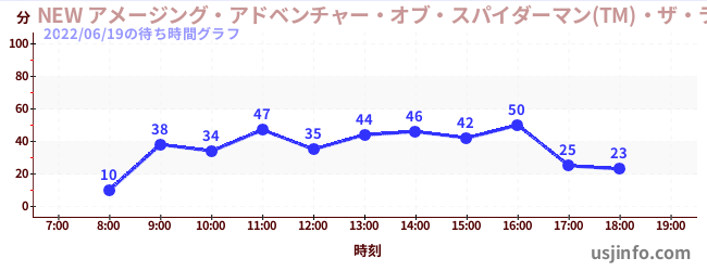 • NEW アメージング・アドベンチャー・オブ・スパイダーマン(TM)・ザ・ライド 4K3D$B$N(B2022年06月19日の待ち時間