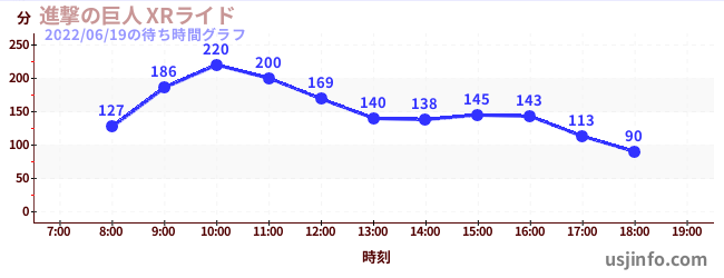 • 進撃の巨人 XRライド$B$N(B2022年06月19日の待ち時間