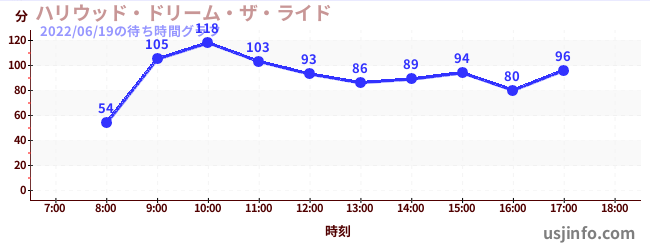• ハリウッド・ドリーム・ザ・ライド$B$N(B2022年06月19日の待ち時間
