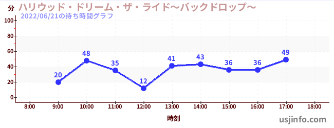 • ハリウッド・ドリーム・ザ・ライド〜バックドロップ〜$B$N(B2022年06月21日の待ち時間