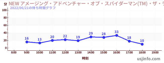 • NEW アメージング・アドベンチャー・オブ・スパイダーマン(TM)・ザ・ライド 4K3D$B$N(B2022年06月21日の待ち時間