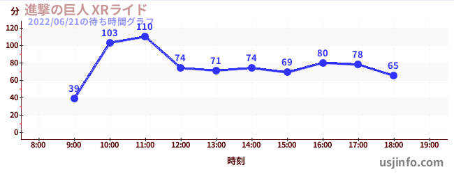 • 進撃の巨人 XRライド$B$N(B2022年06月21日の待ち時間