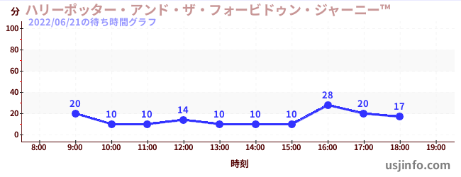 • ハリーポッター・アンド・ザ・フォービドゥン・ジャーニー™$B$N(B2022年06月21日の待ち時間