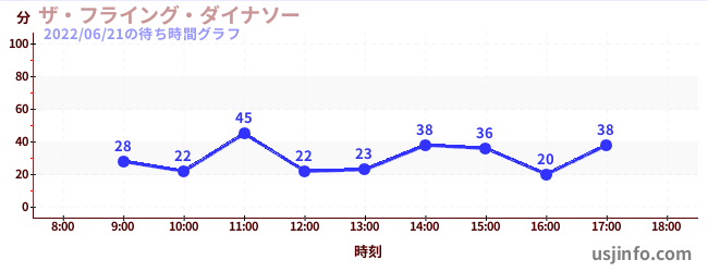 • ザ・フライング・ダイナソー$B$N(B2022年06月21日の待ち時間