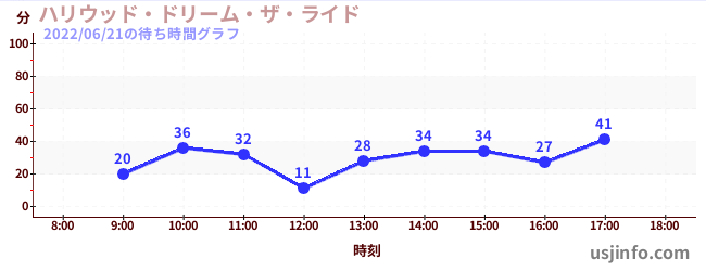 • ハリウッド・ドリーム・ザ・ライド$B$N(B2022年06月21日の待ち時間