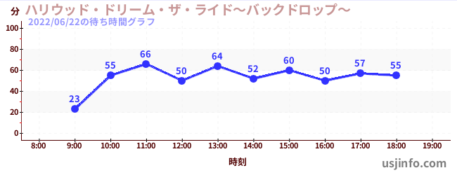 • ハリウッド・ドリーム・ザ・ライド〜バックドロップ〜$B$N(B2022年06月22日の待ち時間
