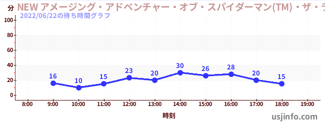 • NEW アメージング・アドベンチャー・オブ・スパイダーマン(TM)・ザ・ライド 4K3D$B$N(B2022年06月22日の待ち時間