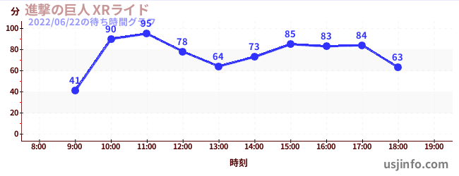 • 進撃の巨人 XRライド$B$N(B2022年06月22日の待ち時間