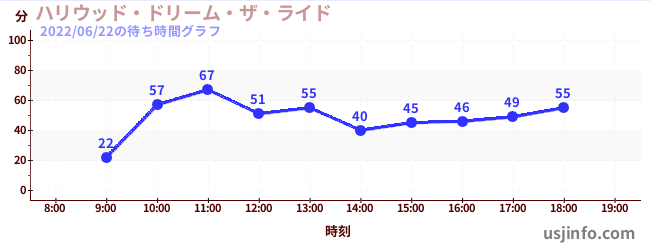 • ハリウッド・ドリーム・ザ・ライド$B$N(B2022年06月22日の待ち時間
