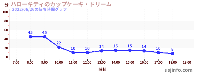 • ハローキティのカップケーキ・ドリーム$B$N(B2022年06月26日の待ち時間