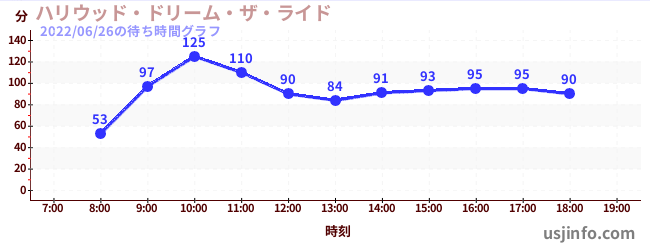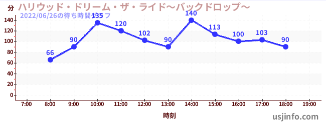 • ハリウッド・ドリーム・ザ・ライド〜バックドロップ〜$B$N(B2022年06月26日の待ち時間