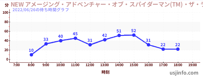 • NEW アメージング・アドベンチャー・オブ・スパイダーマン(TM)・ザ・ライド 4K3D$B$N(B2022年06月26日の待ち時間