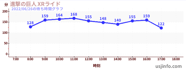 • 進撃の巨人 XRライド$B$N(B2022年06月26日の待ち時間