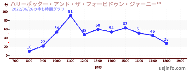 • ハリーポッター・アンド・ザ・フォービドゥン・ジャーニー™$B$N(B2022年06月26日の待ち時間