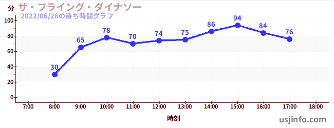 • ザ・フライング・ダイナソー$B$N(B2022年06月26日の待ち時間