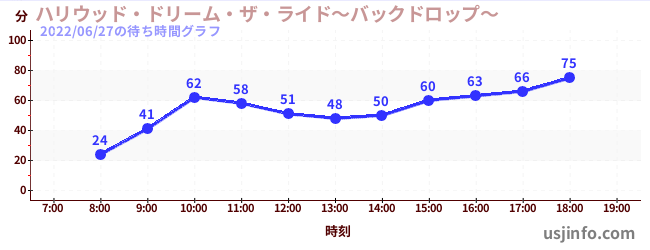 • ハリウッド・ドリーム・ザ・ライド〜バックドロップ〜$B$N(B2022年06月27日の待ち時間