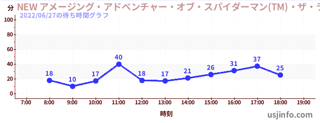 • NEW アメージング・アドベンチャー・オブ・スパイダーマン(TM)・ザ・ライド 4K3D$B$N(B2022年06月27日の待ち時間