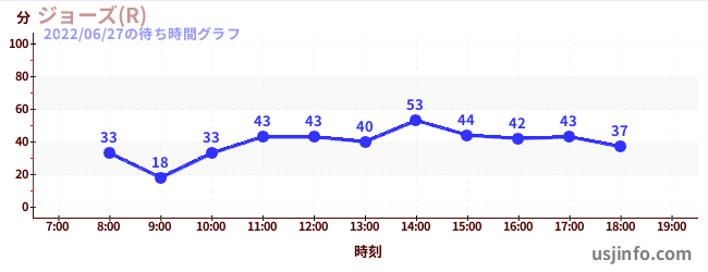 • ジョーズ(R)$B$N(B2022年06月27日の待ち時間