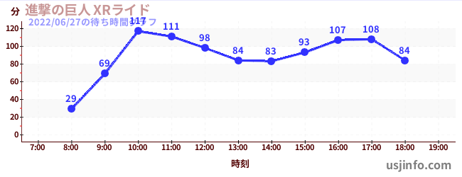 • 進撃の巨人 XRライド$B$N(B2022年06月27日の待ち時間