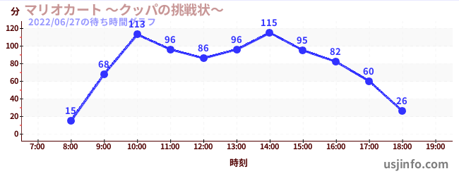 • マリオカート ~クッパの挑戦状~$B$N(B2022年06月27日の待ち時間