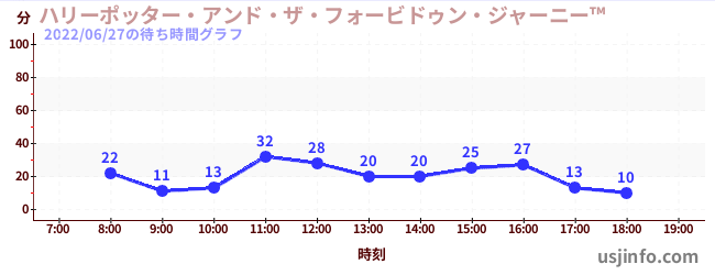 • ハリーポッター・アンド・ザ・フォービドゥン・ジャーニー™$B$N(B2022年06月27日の待ち時間
