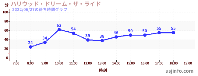 • ハリウッド・ドリーム・ザ・ライド$B$N(B2022年06月27日の待ち時間