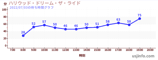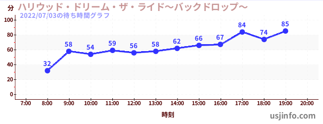 • ハリウッド・ドリーム・ザ・ライド〜バックドロップ〜$B$N(B2022年07月03日の待ち時間