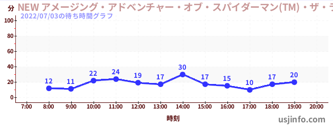 • NEW アメージング・アドベンチャー・オブ・スパイダーマン(TM)・ザ・ライド 4K3D$B$N(B2022年07月03日の待ち時間