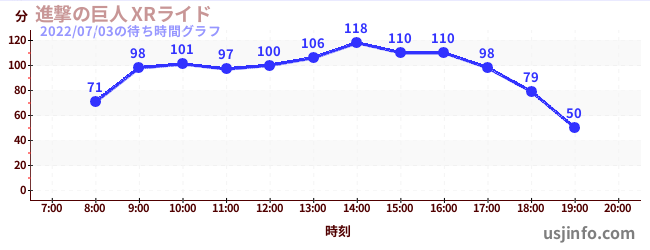 • 進撃の巨人 XRライド$B$N(B2022年07月03日の待ち時間