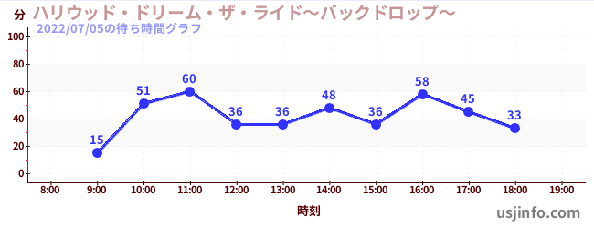 • ハリウッド・ドリーム・ザ・ライド〜バックドロップ〜$B$N(B2022年07月05日の待ち時間
