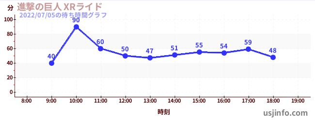 • 進撃の巨人 XRライド$B$N(B2022年07月05日の待ち時間