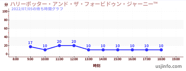 • ハリーポッター・アンド・ザ・フォービドゥン・ジャーニー™$B$N(B2022年07月05日の待ち時間