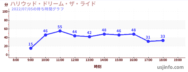 • ハリウッド・ドリーム・ザ・ライド$B$N(B2022年07月05日の待ち時間