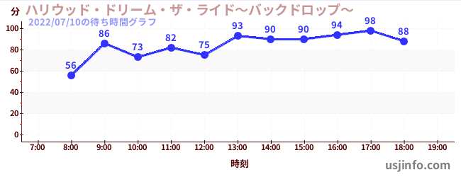 • ハリウッド・ドリーム・ザ・ライド〜バックドロップ〜$B$N(B2022年07月10日の待ち時間