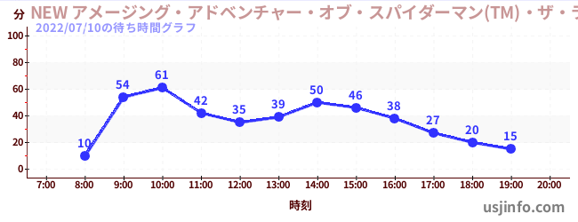 • NEW アメージング・アドベンチャー・オブ・スパイダーマン(TM)・ザ・ライド 4K3D$B$N(B2022年07月10日の待ち時間